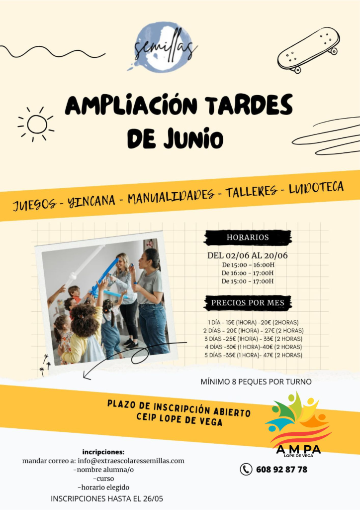 Durante el mes de junio, el colegio contará con servicio de ampliación de horario para las familias que lo necesiten.