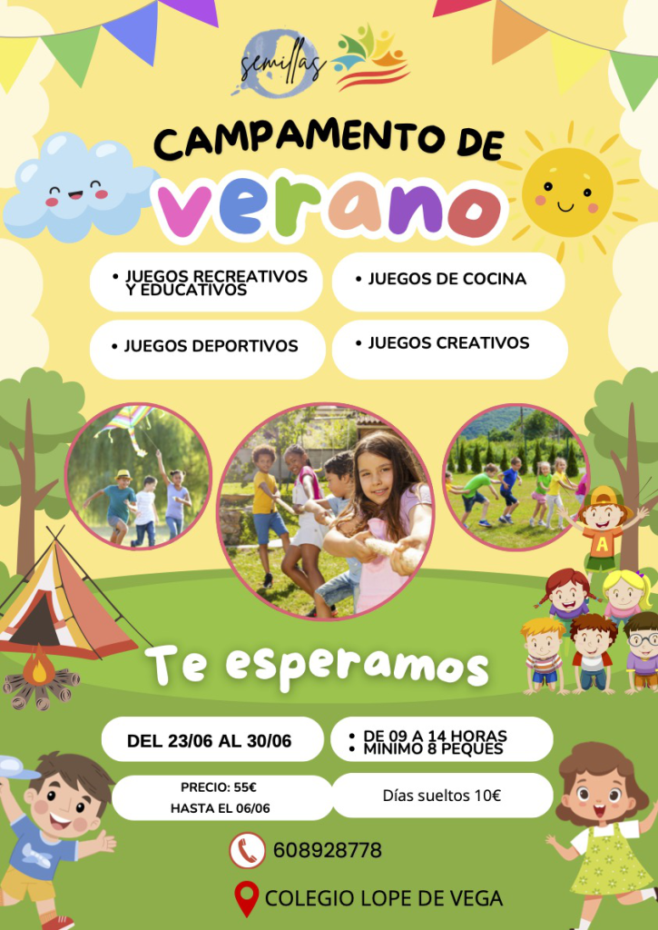 También os compartimos el cartel del Campamento de verano, que tendrá lugar la última semana de junio con muchas actividades para disfrutar y aprender.
