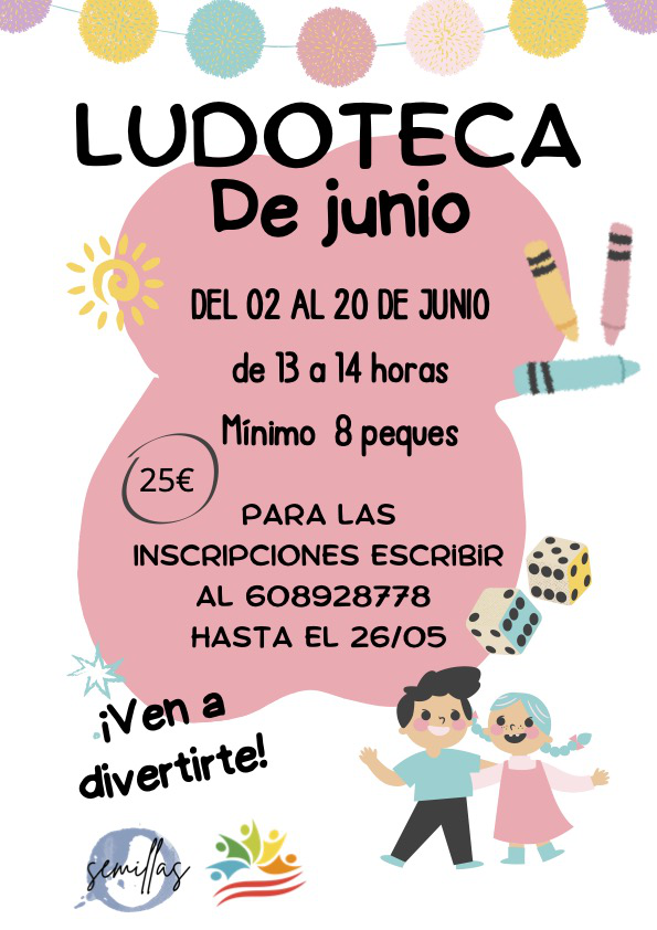 Os dejamos el cartel con toda la información sobre la Ludoteca de junio, un servicio pensado para facilitar la conciliación durante el horario reducido.